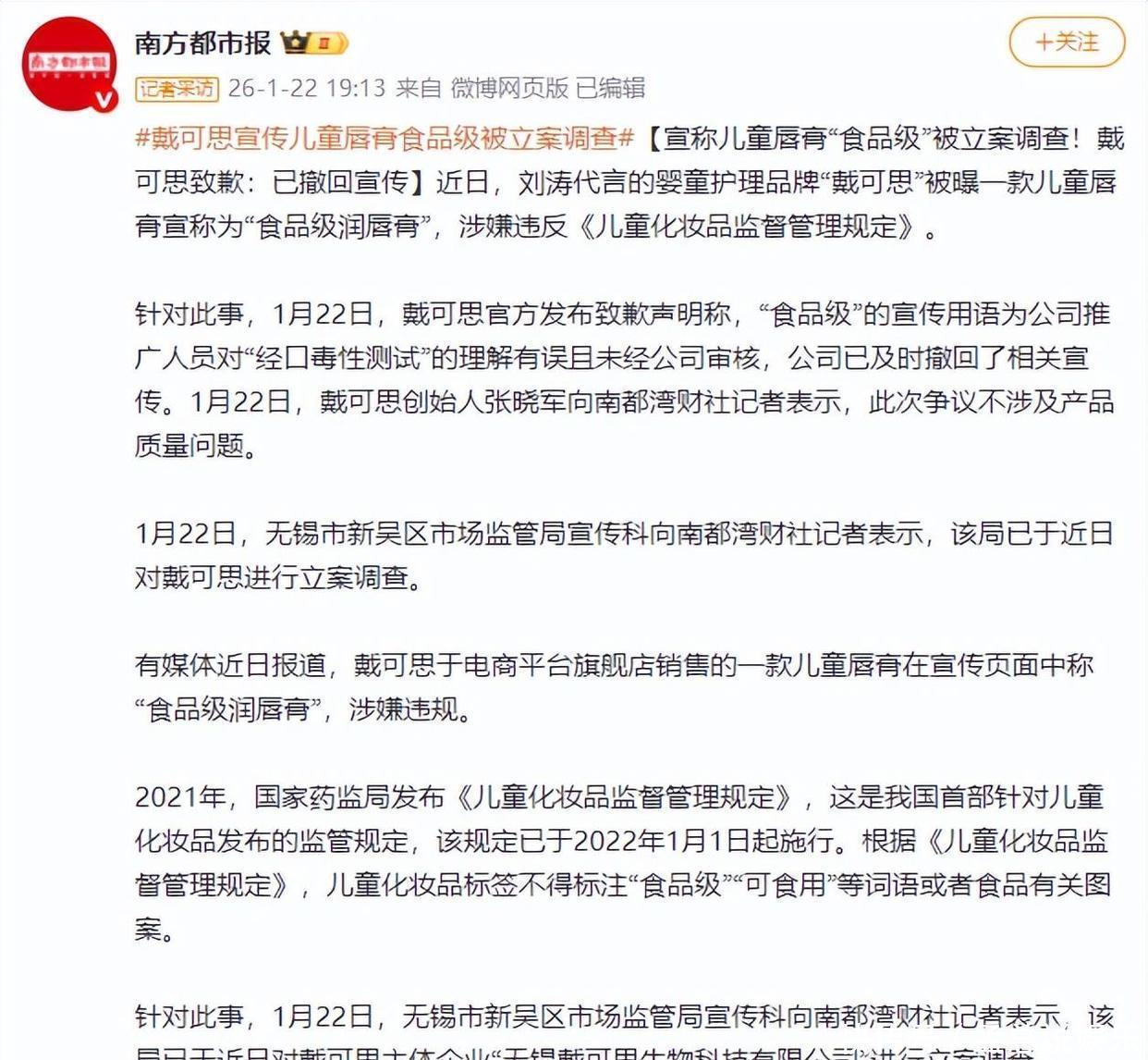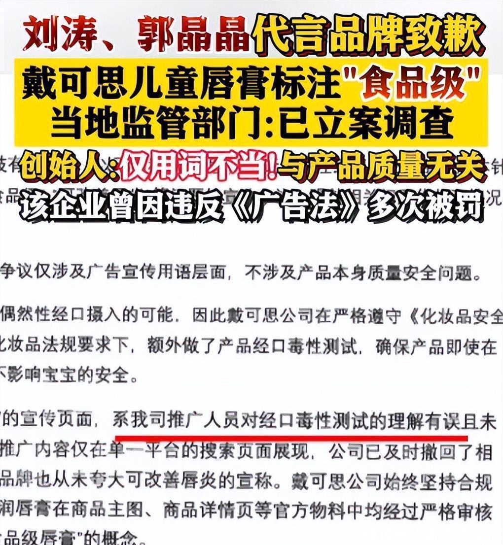 这次闹腾的根源,主要是因为那边品牌方搞违章宣传了。商家在宣传儿童润唇膏的时候,竟然用了“食品级”这些不得随便标的词。这事儿挺严肃的,润唇膏毕竟不是吃的东西,不能乱打“食品级”这些字眼。