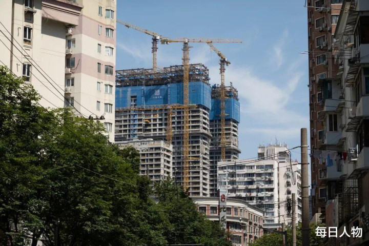 从外滩漫步3公里到新天地,白天这里是上海最热闹的地方,潮人聚集、豪车轰鸣,晚上9点后,频繁驶入的却是电瓶车、小货车。工人们循着夜色陆续进入各个塔吊下的工地,工地的围挡并非常见的蓝色铁皮,更像宣传海报,光滑、挺括,它们展示着正在修建的各个豪宅项目。这些住宅多数尚未完工,就以期房的形式推向市场。